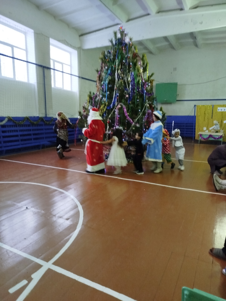Самым волнительным ожиданием для ребят было появление доброго Деда Мороза и Снегурочки. Дети вместе с Дедом Морозом водили хоровод вокруг ёлочки, танцевали, играли в игры , рассказывали свои стихи. Восточный танец танцевала- Ихсанова Зарина.